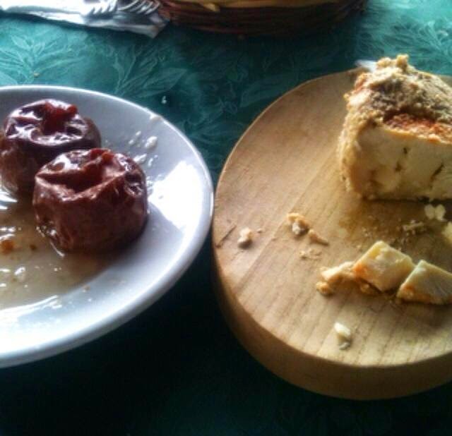 La famiglia Lombardi mi accolse amorevolmente, iniziando con un pranzo delizioso, saporito, un caleidoscopio di specialità casertane, alcune specifiche proprio di Castel di Sasso. Per dessert mi sono state offerte delle mele annurche cotte al forno in vino Casavecchia, tipico della zona e accompagnate da Conciato Romano puro, solo lui. Una sferzata di contrappunti di sapore: semplicità, forza, storia, proprio come il territorio Casertano, la Campania Felix.